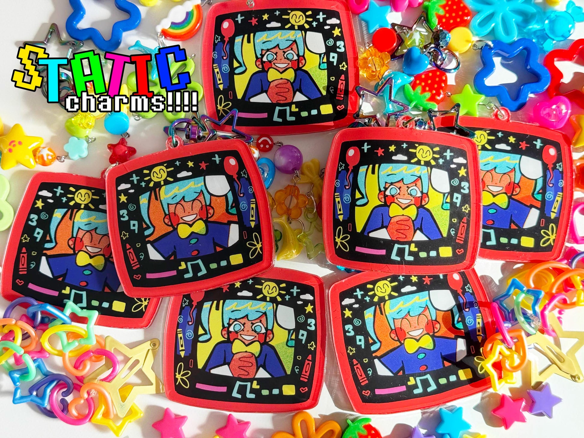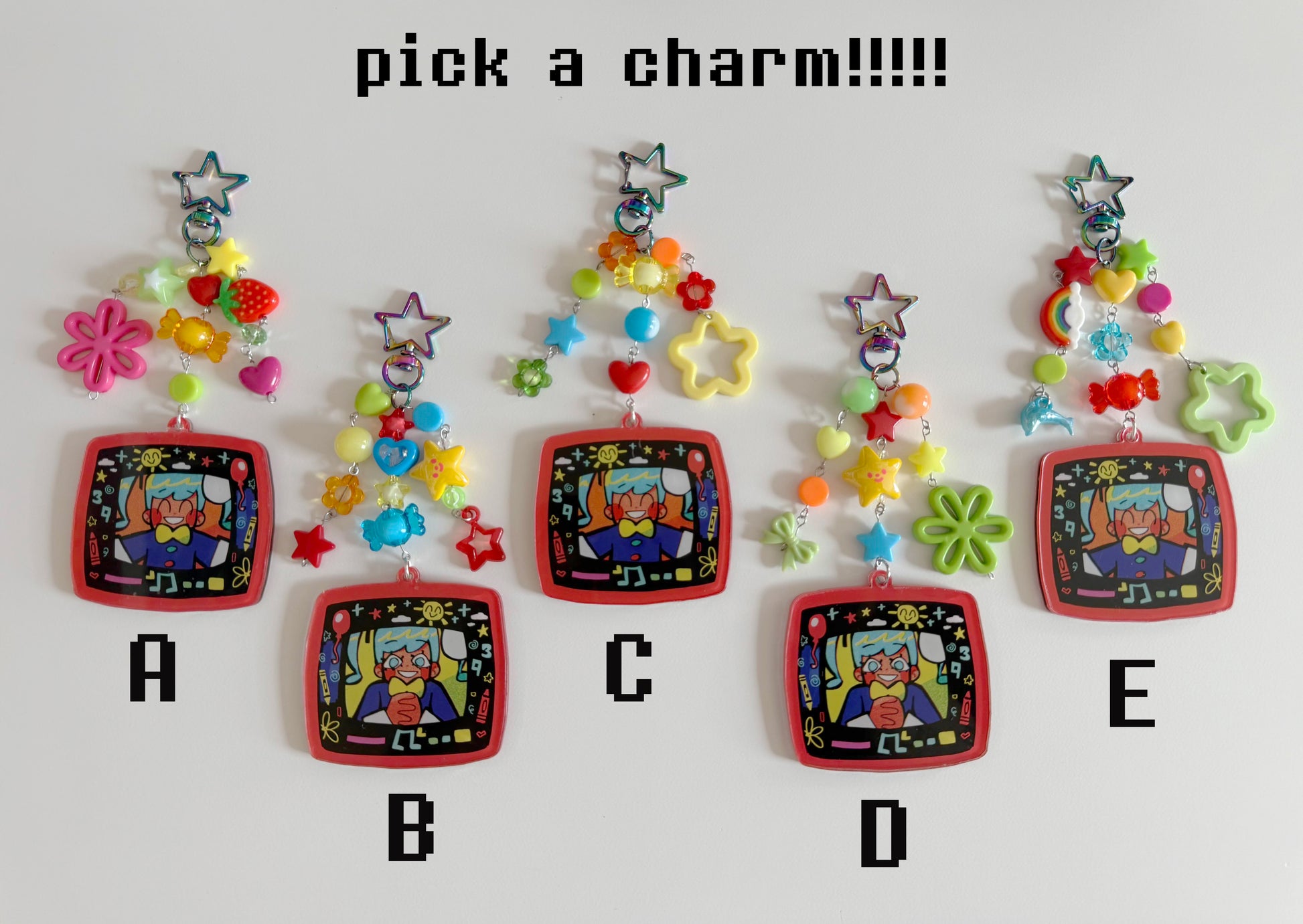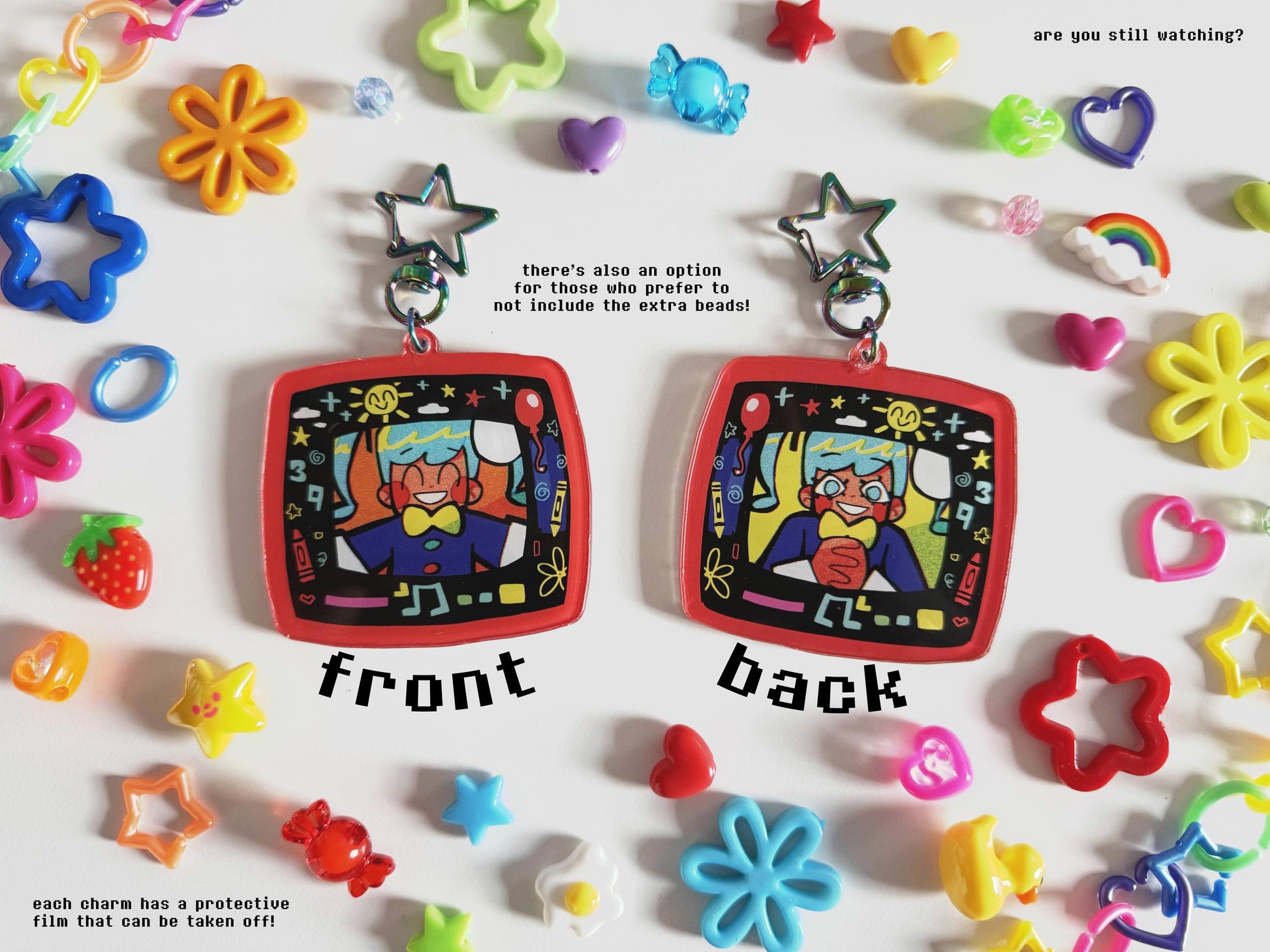 Each keychain has a protective film that you can peel off (only applies to the acrylic charm on the bottom).